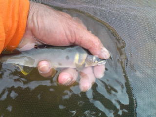 ンチのチビあゆばかり10匹です、雨に濡れて寒いので早めに上がり場所移動しますシャツを